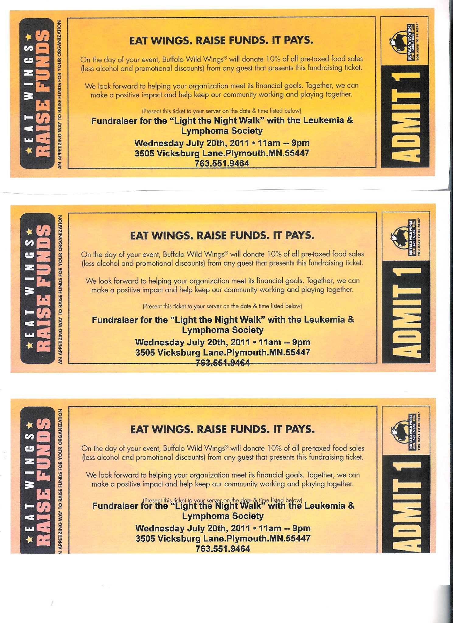 Join Team ‘Star Lights’ for a FUNraising day at Buffalo Wild Wings to support the Leukemia & Lymphoma Society in the Light the Night Walk.